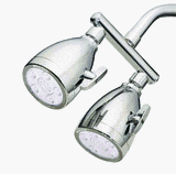 Anystream full featured twin head design with massage. Plunger nozzle system delivers great spray intensity at any water pressure. Large operating handles offer precise control and easy spray selection. 10 jet showerhead with powerful spray streams offers