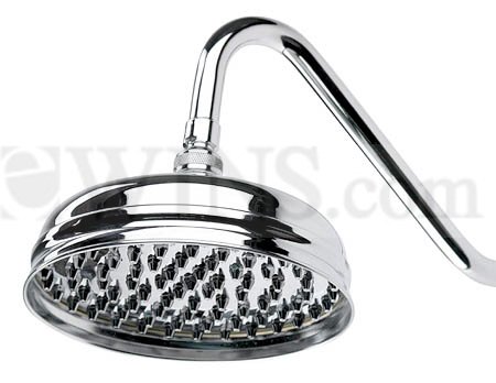 This huge 8-inch-diameter showerhead delivers a wide spray that feels like you are standing under a storm of pouring rain. 91 Nozzles in the center of the head deliver an enveloping and relaxing shower. The elegantly designed showerhead is constructed of chrome and solid brass. It attaches to the shower pipe with an attractive S-shaped extension arm. A pivoting joint at the end of the arm lets you aim the spray in whatever direction you choose. The kit ships with showerhead, extension arm, and wall cap, and is easy to install and clean. One caution to people who like a hard shower: this is a water-saving attachment that conserves about 2-1/2 gallons of water per minute. As a result, this showerhead delivers a gentler spray even in homes where the water pressure is strong.