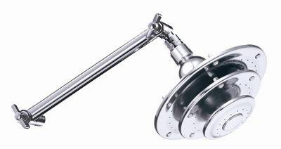 6" Three Tier Showerhead with 9" Adjustable Arm Chrome Finish 9" adjustable extension arm Water streams from all three tiers Attaches to your showerarm
