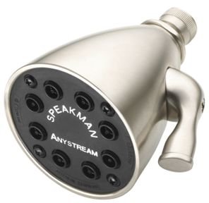 Speakman S-2251-SN Anystream Showerhead, Brushed NickelSpeakman Anystream Brushed Nickel Showerhead are designed with deposit resisting spray channels for maximum coverage. Standard fittings and deluxe design allow for optimal integration into any setting.Speakman S-2251-SN Showerhead Specifications:; SN - Brushed Nickel; Autoflo device reduces flow to 2.5 gpm/9.46 lpm maximum; Meets ANSI A112.18.1M Standard; 1/2" NPTF inlet; 8 self-cleaning Lexan deposit resisting spray jets with 64 spray channels; 64 spray channels; Spray adjusting contoured handle; Solid brass construction