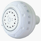 Fixed mount massage showerhead with 6 adjustable settings: Full spray, aeration, massage; combinations full aeration, full massage, and massage aeration. Mounts onto standard 1 2" shower arm. Finger touch adjustment, anti clog rubber tips keep the showerh
